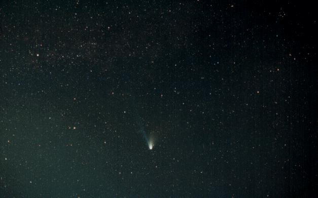 object: C/1995 O1 Hale-Bopp date of obs: Feb 19 1997 20:09-20:12 UT. place of obs: Hasunuma Chiba Japan camera: Nikon FE2, Nikkor 50mm/f1.8(2.0) film: Fuji SuperG ACE 800 equatorial: Vixen GP-D observer: Takao Yokota remarks: