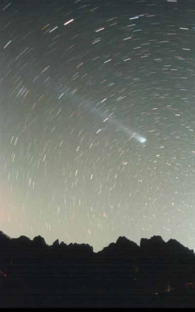 object: C/1996 B2 Hyakutake date of obs: Mar 25 1996 18:56-19:06 UT place of obs: Myogi Gunma Japan camera: Nikon FM2, Fisheye-Nikkor 16mm F2.8(2.8)lens film: Fujicolor ACE400, Hi-Con II developer equatorial: Takahashi EM200 observer: Shigeru Kotajima remarks: